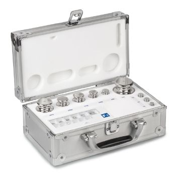 Sets of weights, knob shape, finely turned stainless steel, Aluminium protected case