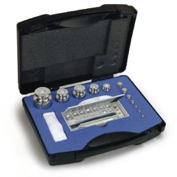 Sarja sylinterin mallisia painoja, jotka on valmistettu ruostumattomasta teräksestä. Milligrammapainot alumiinia/saksan hopeaa. Säilytyslaatikko vuorattua muovia. Milligrammapainot erillisessä muovilaatikossa.